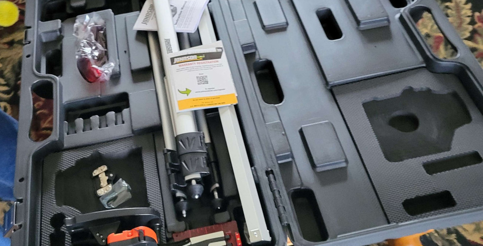Since spring we've been slowly working on breaking ground and determining where on the property to place the building. After the location was roughly determined we created a simple 2x4 frame that we can stake into the ground to represent the building site as well as to begin taking measurements on what's needed to get the ground to grade. We initially started with a simple framing equipment to get to level but quickly determined that a laser leveler is needed to get the accuracy we desired. Resulting in the purchase of a outdoor self balancing laser level and surveying kit.